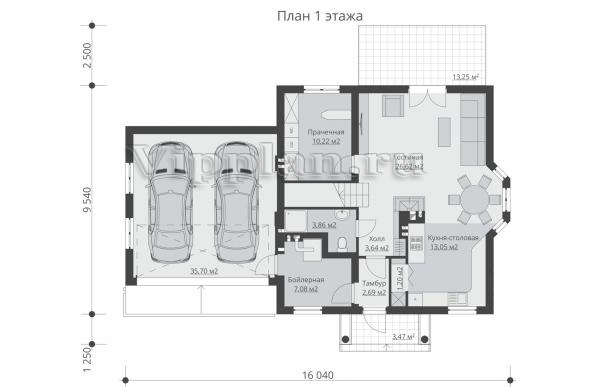 | Размеры дома: | 16.04м×9.54м |