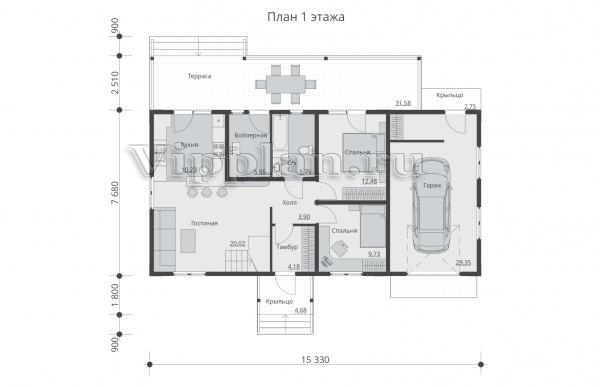 | Размеры дома: | 15.33м×11.99м |
