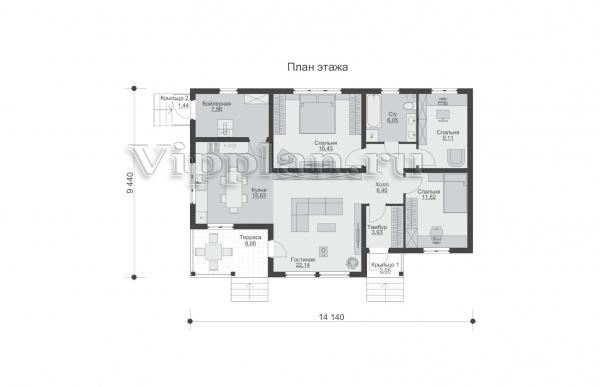 | Размеры дома: | 14.14м×9.44м |